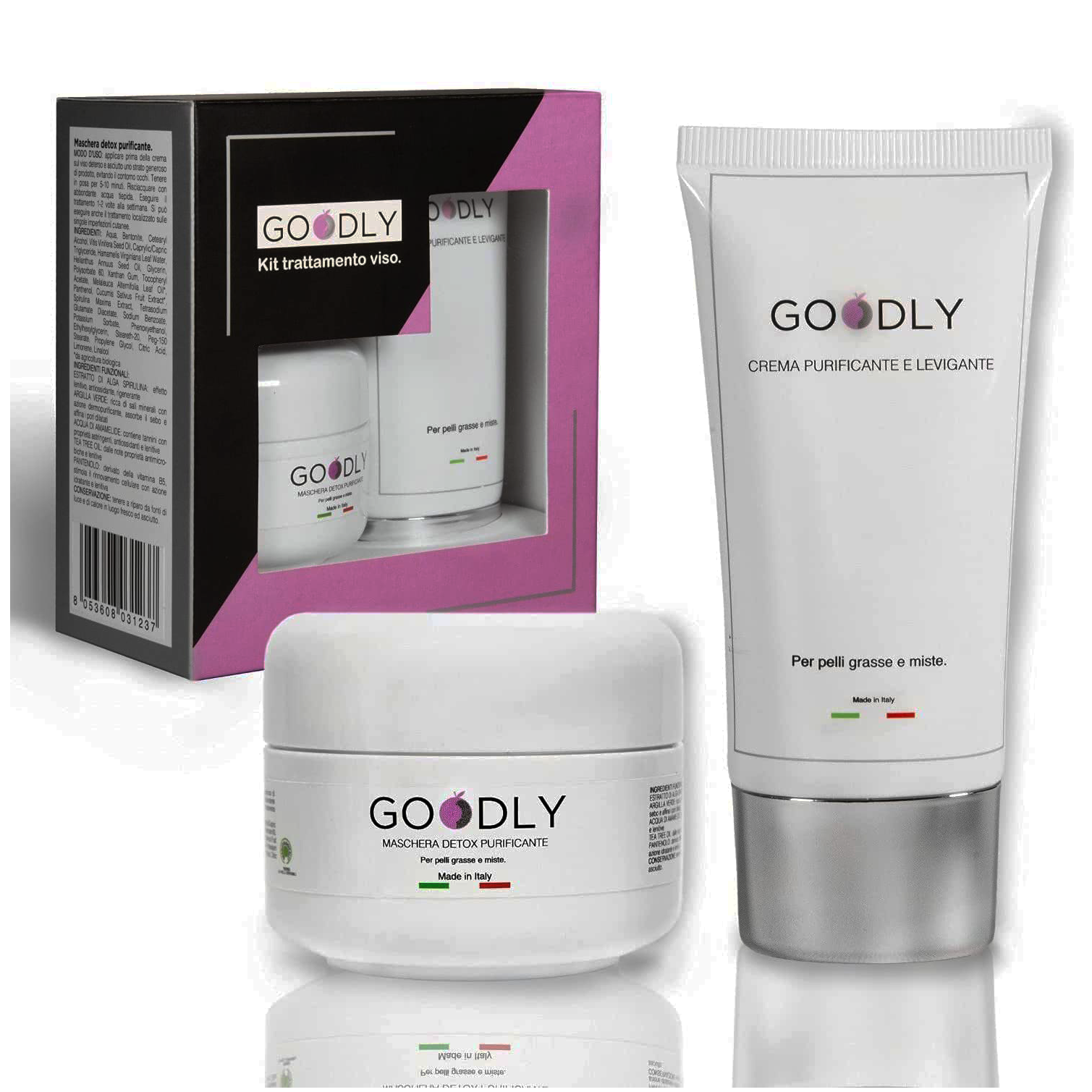 Due prodotti in un unico Kit in un packaging bello, elegante e accattivante che rende il trattamento GOODLY un regalo per ogni occasione.
